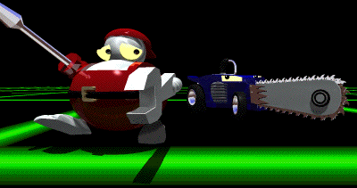 RIPPER's mission is to seek out enemy ToolBots and RIP them apart. RIPPER moves through neutral NetSpace looking for ToolBots from enemy domains. RIPPER is quicker than most other ToolBots and very determined. Once RIPPER has caught sight of its prey, there is little chance of escape. RIPPER charges towards its prey and cuts it to bits. |